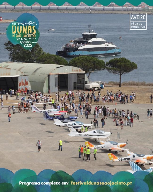 O Festival Dunas de São Jacinto 2025 reforçou o papel da CMA na dinamização turística e cultural do território, com uma aposta clara na mobilidade elétrica, na valorização da natureza e na projeção do aeródromo de São Jacinto como futuro Aeródromo Municipal.
