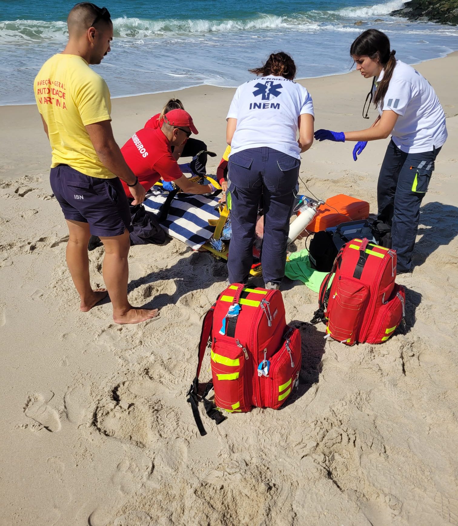 “À chegada ao local, constatou-se que a vítima já tinha sido retirada da água para o areal, onde foi prontamente assistida, através de manobras de reanimação realizadas pelos elementos do INEM, com o apoio dos elementos dos bombeiros e do ‘Projeto SeaWatch’, tendo sido possível reverter a situação”, refere o comunicado da AMN.