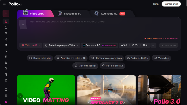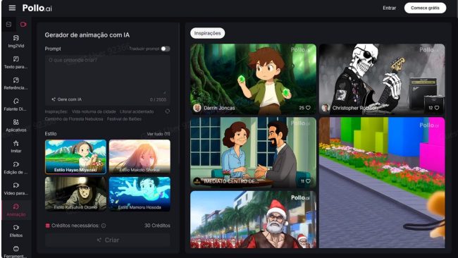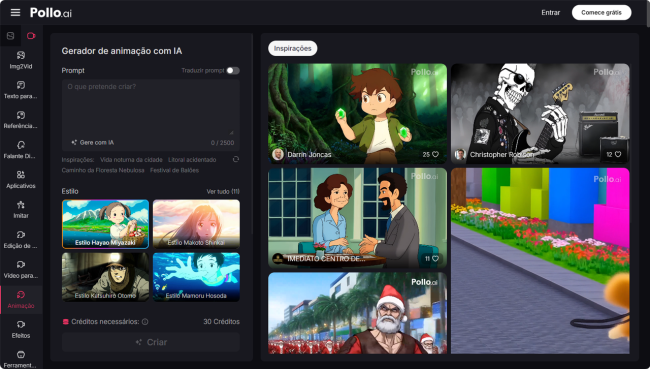 O Gerador de Animação com IA do Pollo AI: crie sequências cinematográficas a partir de texto, com total controlo sobre o estilo e movimento do resultado final.