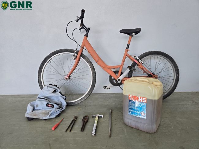 Da ação, foi possível apreender um jerricã com 20 litros de gasóleo, uma bicicleta, uma mochila e ferramentas várias.