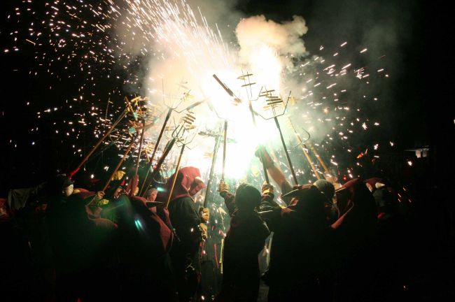 Os ‘diables’ são os protagonistas humanos do ‘Correfoc’, uma tradição associada às Fiestas de La Mercè, em Barcelona, representando “figuras demoníacas, satíricas e provocatórias, vestidas com trajes ignífugos, geralmente decorados com símbolos infernais, chamas ou motivos tradicionais.”