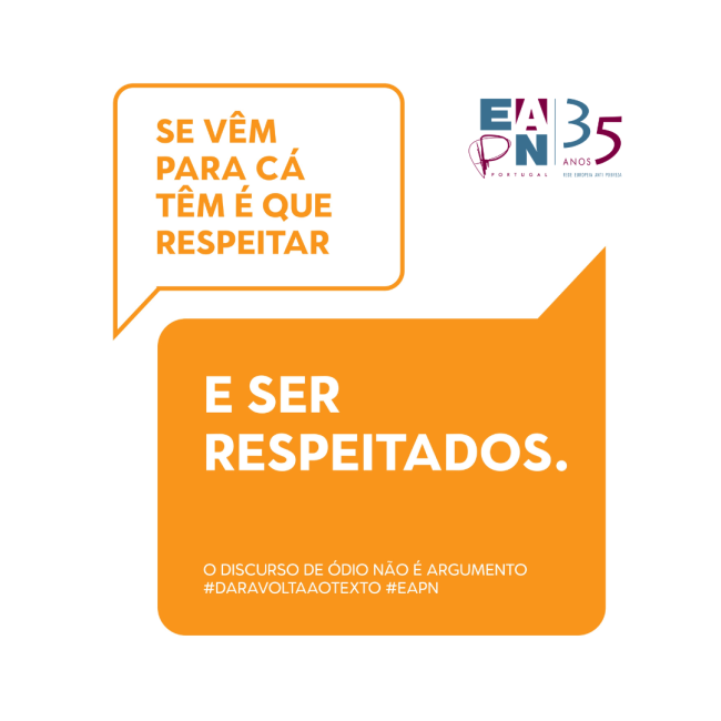 A EAPN Portugal / Rede Europeia Anti-Pobreza relança a campanha “O Discurso de Ódio Não É Argumento” no início da sua Semana da Interculturalidade 2026. Lançada originalmente em 2021, apresenta agora uma nova abordagem gráfica, uma nova frase e o envolvimento de várias figuras públicas de diferentes áreas da sociedade portuguesa.